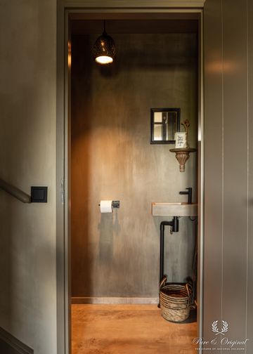 De badkamer is geschilderd met Fresco kalkverf in de kleur Wild Garlic