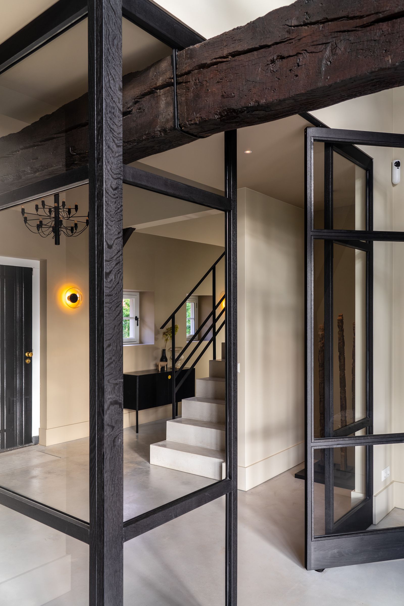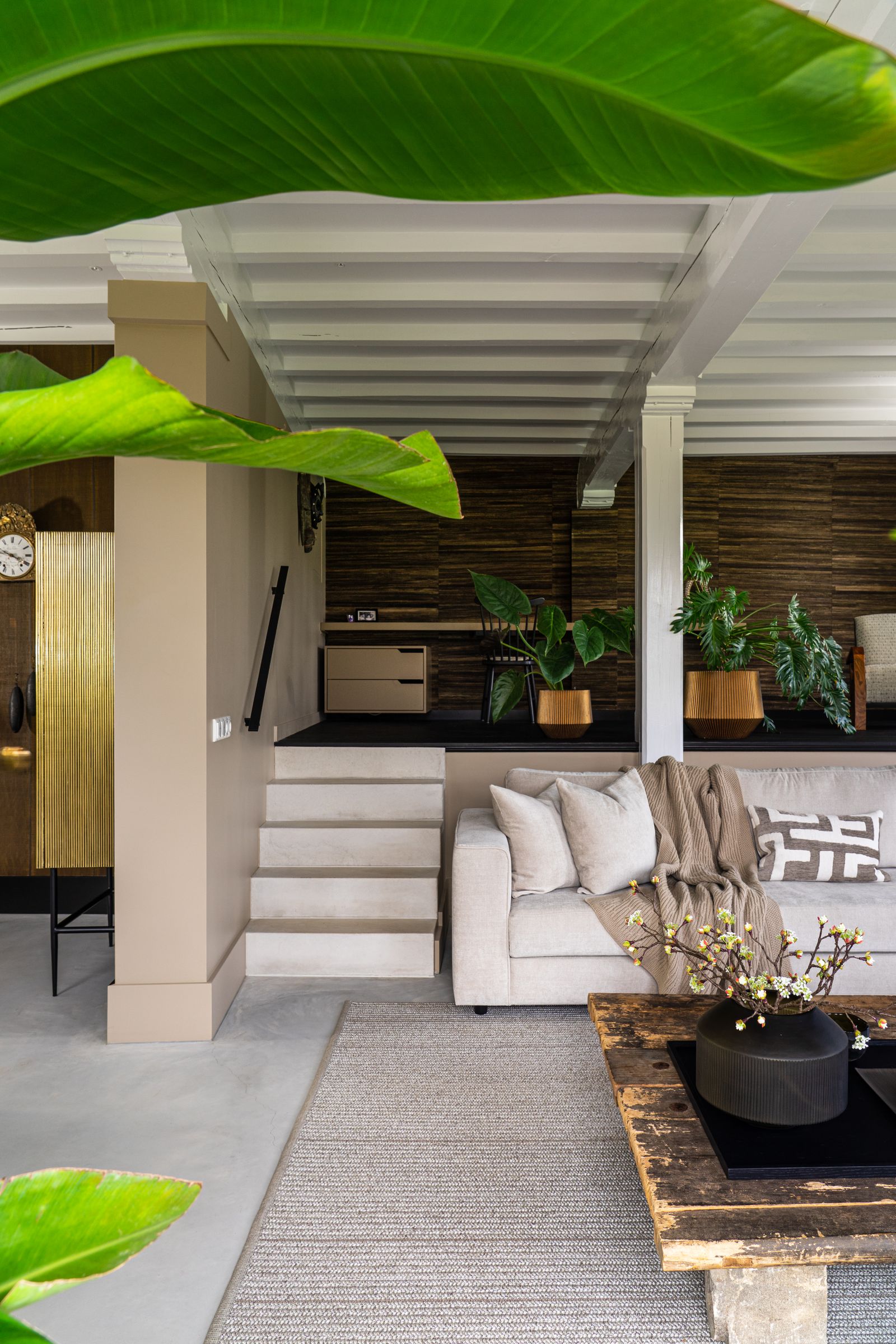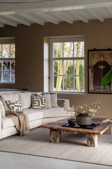 Kijk binnen in de verbouwde boerderij van Erwin en Loes. Een landelijke woning voorzien van een modern interieur met een gouden randje.