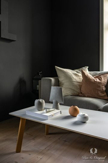 Woonkamer is geschilderd met Classico krijtverf in de kleur Black Smoke