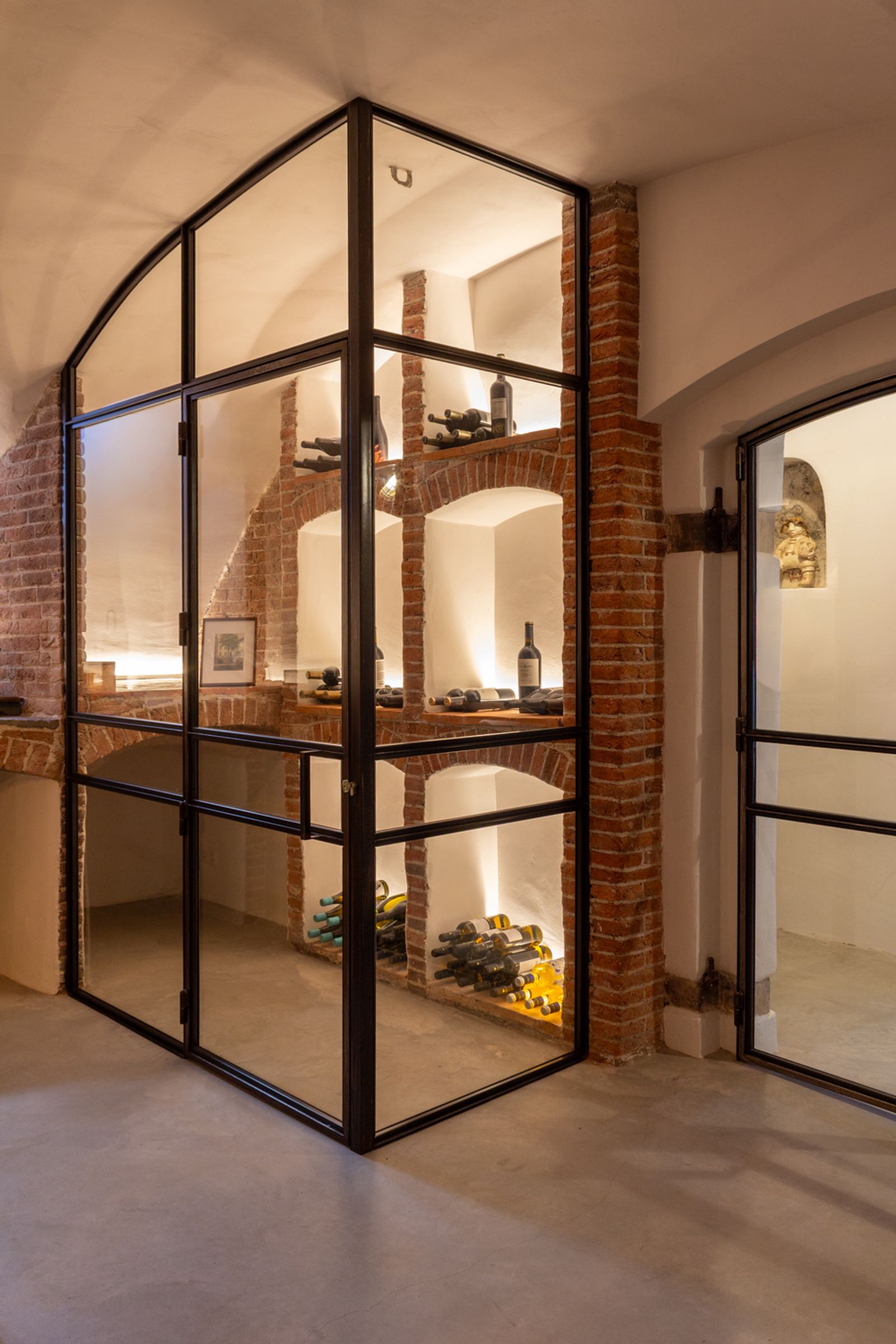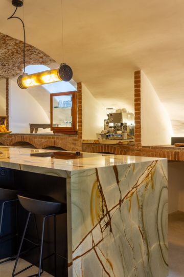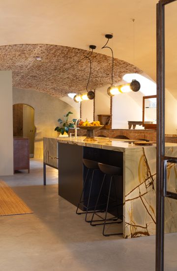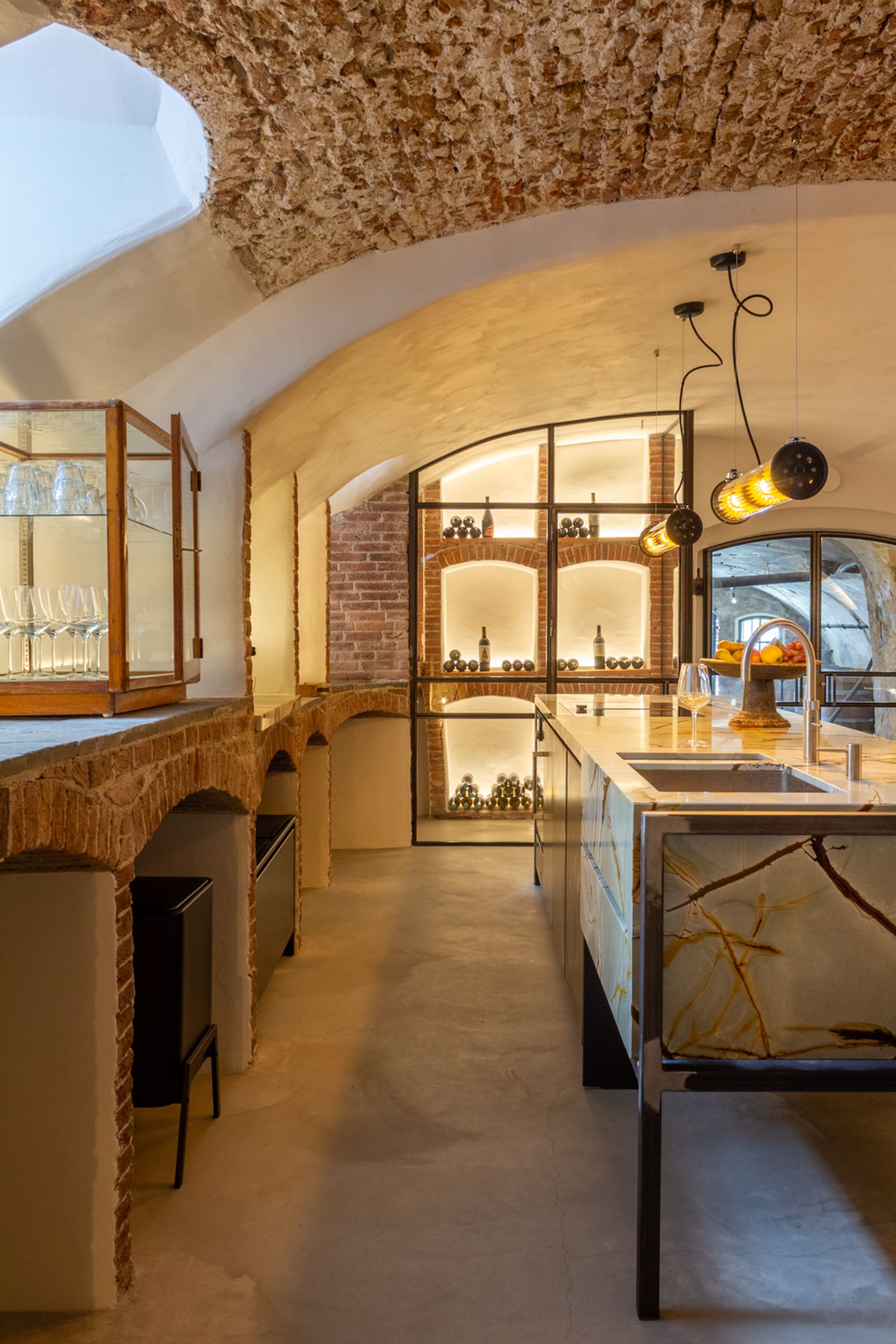 De zorgvuldig gekozen materialen en kleuren versterken de karakteristieke elementen van de oude grachtenkelder en maken het appartement tot een unieke plek waar historie en modern design harmonieus samenkomen.