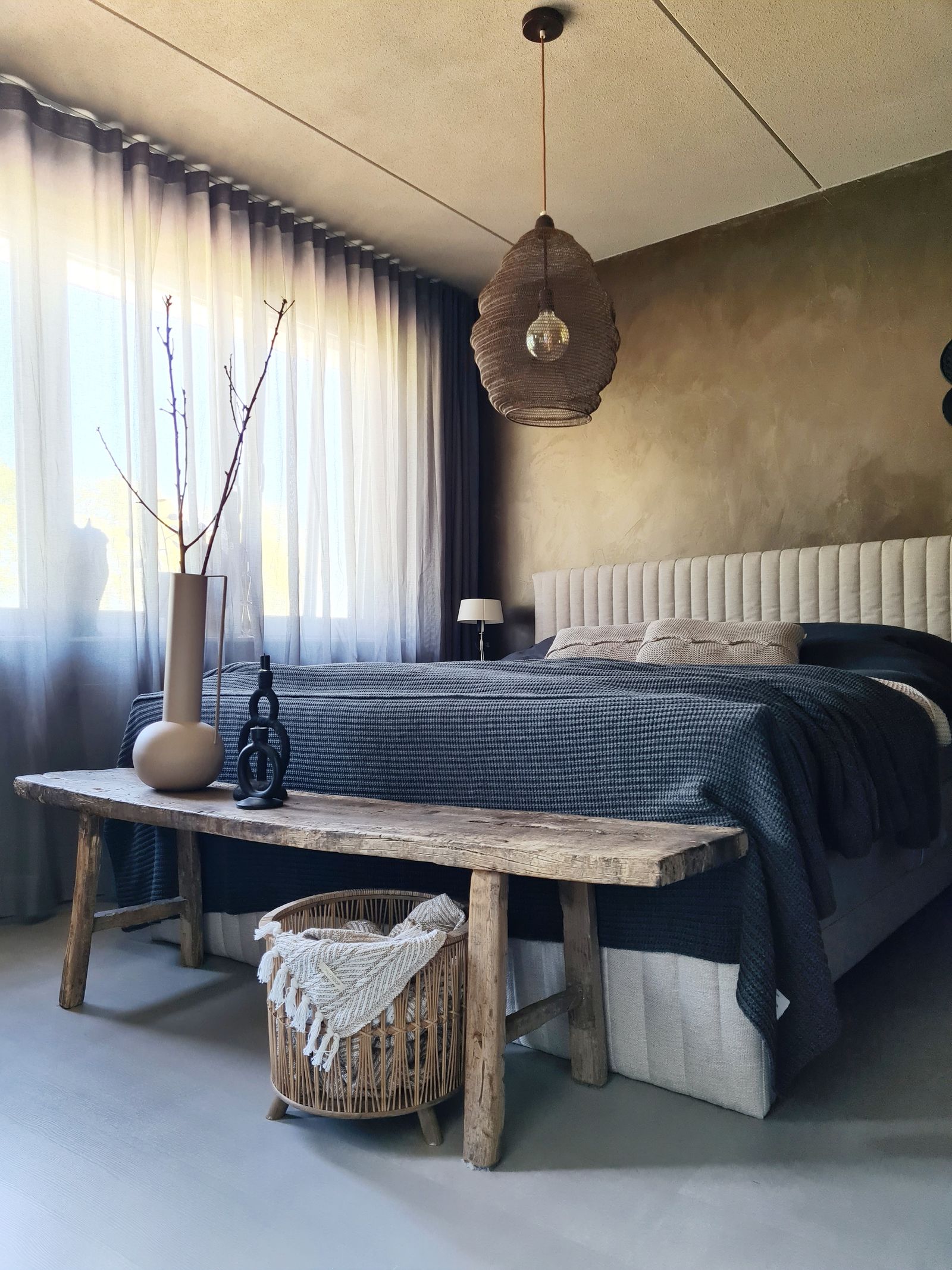 Ik was van tevoren echt waanzinnig benieuwd naar het resultaat van het verfplan en vooral van de metallic muur. Het is altijd spannend of het resultaat ook echt gaat zijn wat je ervan verwacht en of de kleuren en materialen goed matchen, maar ik ben erg blij met het resultaat! De metallic verf is echt de eye catcher van onze master bedroom.