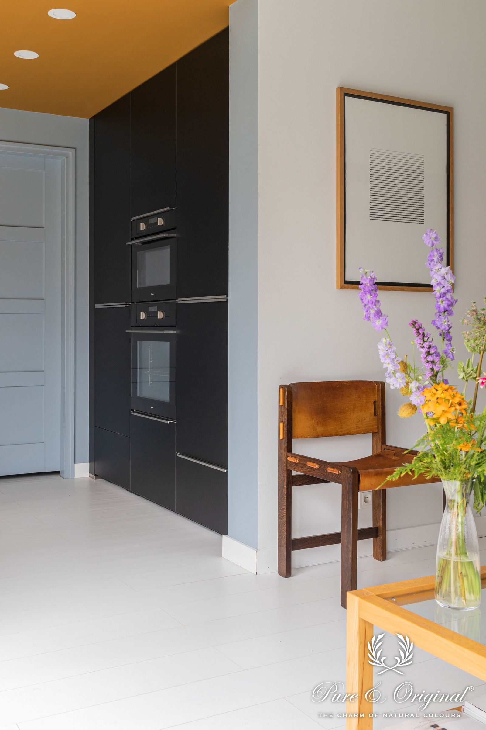 In mijn ogen zijn er wat betreft kleur geen regels. Je kiest kleuren en kleurencombinaties op gevoel, wat past bij je, wat maakt je blij. Dit maakt een interieur ook ‘jouw’ interieur en zorgt ervoor dat het bij je past als een warme deken. Wanneer je het lastig vind om kleurencombinaties te maken, kun je altijd hulp inschakelen van een interieurontwerper. Wat ik als tip mee wil geven is om het bij een kleurenbrochure van bijvoorbeeld Pure & Original te houden. Dit geeft al een soort kader, in plaatst van de duizenden kleuren in een bouwmarkt die de keuze alleen nog maar moeilijker maken. Zoveel verschillende kleuren heb je namelijk ook helemaal niet nodig om tot een goede combinatie te komen. Tot slot kun je nog proefpotjes aanvragen van je favoriete kleuren en hiermee bijvoorbeeld een vel A3 papier schilderen. Hang deze op verschillende plekken in huis en bekijk de kleuren op verschillende momenten van de dag, zo kun je ook goed zien wat de lichtinval doet met een kleur.