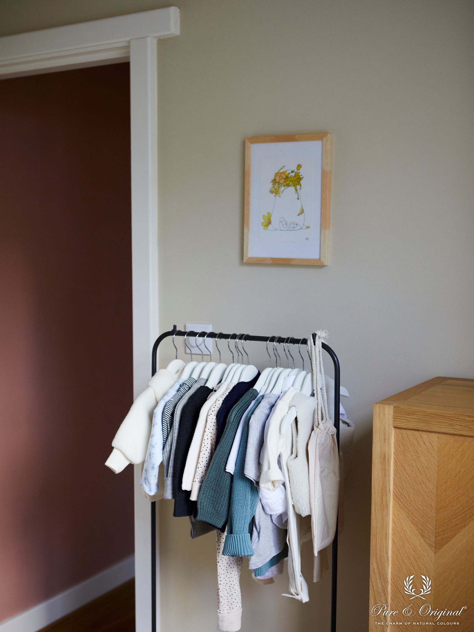 Omdat het om een babykamertje gaat wilde ik het wel graag zacht houden. Een beige tint leek me mooi en via Pure & Original kreeg ik een aantal beige stalen opgestuurd waarna we al snel kozen voor Almond. De woonkamer hebben we in de kleur Sahara Dust geschilderd en daar zijn we mega blij mee maar een ander tintje is wel leuk. Daarnaast wordt Sahara Dust heel warm met zonlicht en vonden we iets koeler leuker voor de babykamer.