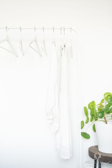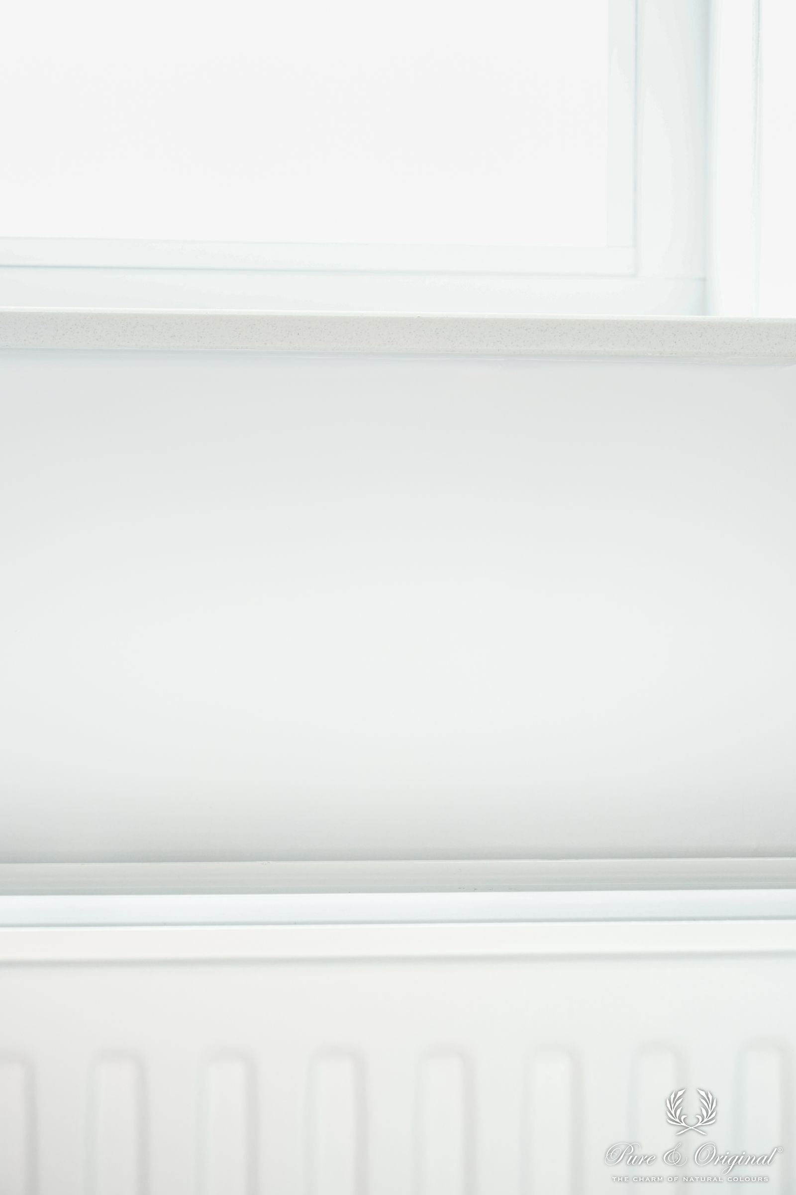 Zo schilderden we het kledingrek en de bloempotten ook in Silk White. Ook de deur, plinten, kozijnen en de radiator namen we mee in dezelfde kleur, zodat de hele ruimte 1 geheel vormt. Hierdoor oogt de ruimte rustig, wat we heel prettig vinden voor de slaapkamer! Voor de deur, plinten en kozijnen gebruikte we de Traditional Paint lak op waterbasis.
