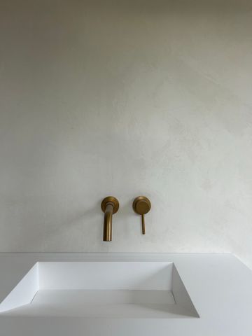 Tadelakt vereist vakmanschap en geduld. De kalkpleister wordt in meerdere lagen aangebracht, gepolijst en daarna behandeld met olijfzeep om waterdicht te worden. Het resultaat is een naadloze, waterbestendige afwerking.