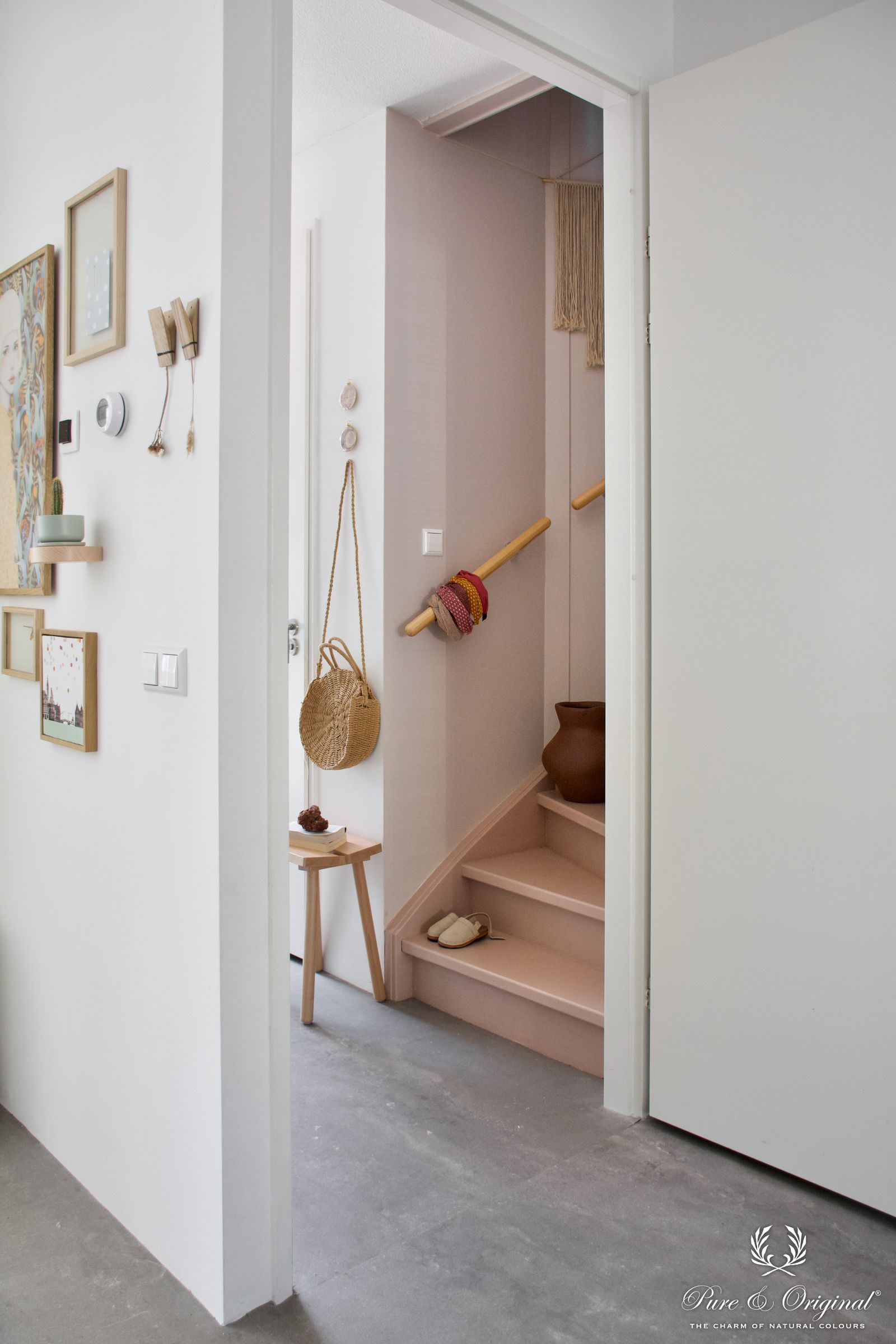 Van de vele prachtige kleuren die Pure & Original heeft sprak Skin Powder mij direct aan! Wauw wat een mooie tint roze. Deze ging op de trap. Uit de nieuwste lente/zomer collectie koos ik Calm voor op de wanden. Het ton sur ton effect is zo mooi geworden.