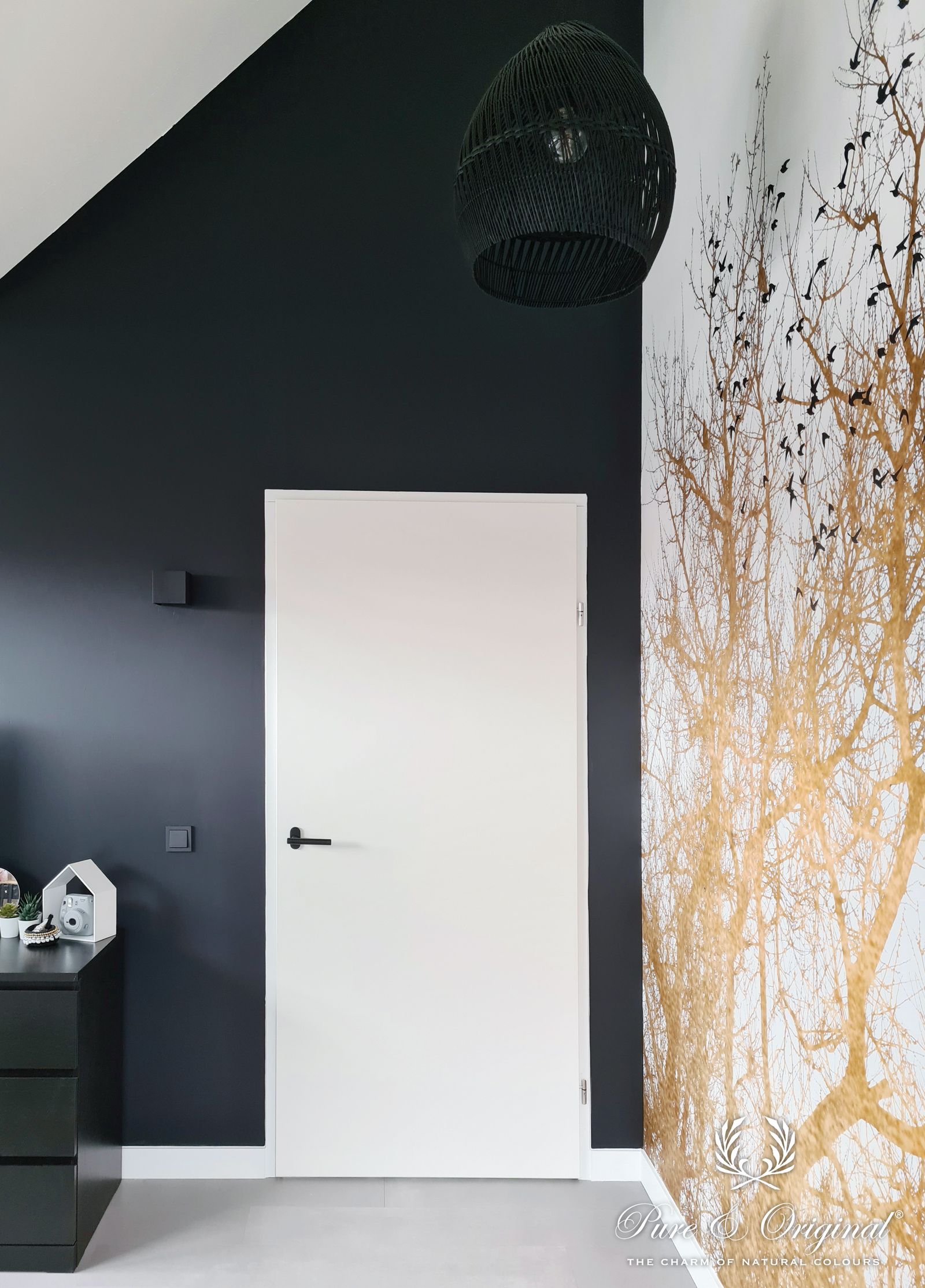 De muur tegenover het bed kreeg ook de kleur Slate Grey. Ik had zelf graag ook de deur en het kozijn in die kleur geverfd, maar daar was Suus heel duidelijk in. Dat ging niet gebeuren ;). Prima, dan laten we het zo!