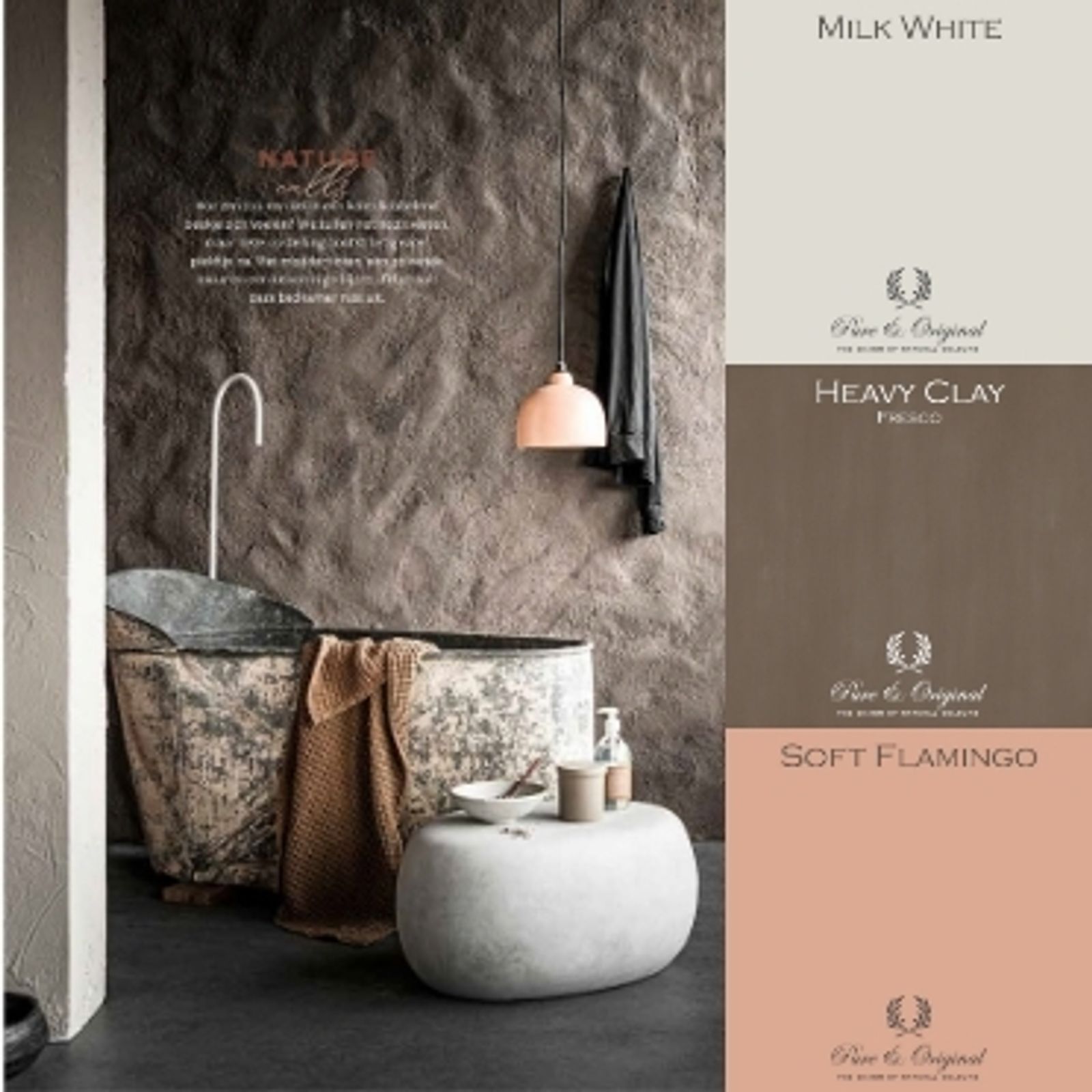 Bathroom with Fresco lime paint in the colour Heavy Clay and freestanding bath