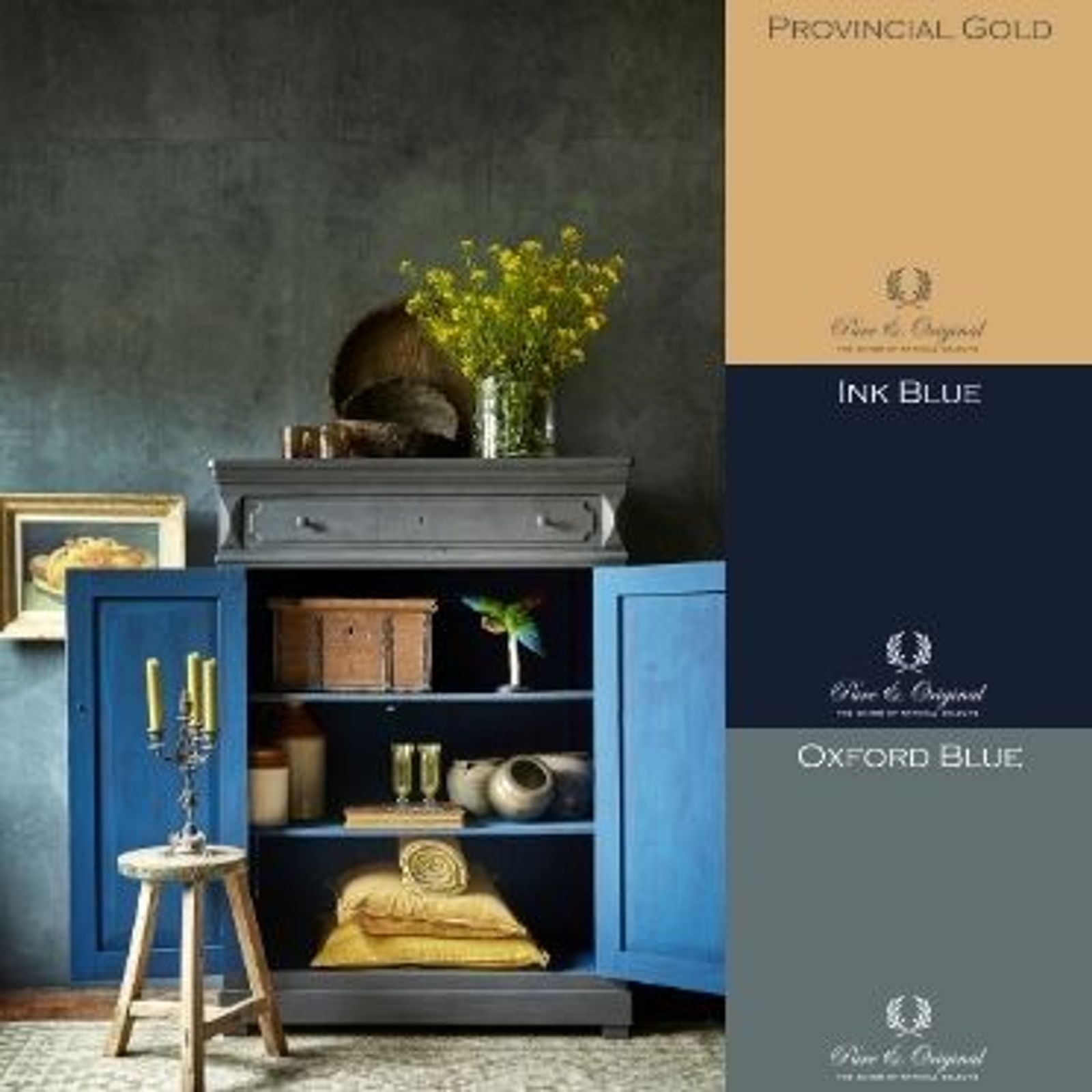 Marrakech Walls in Ink Blue with crockery painted with chalk paint
