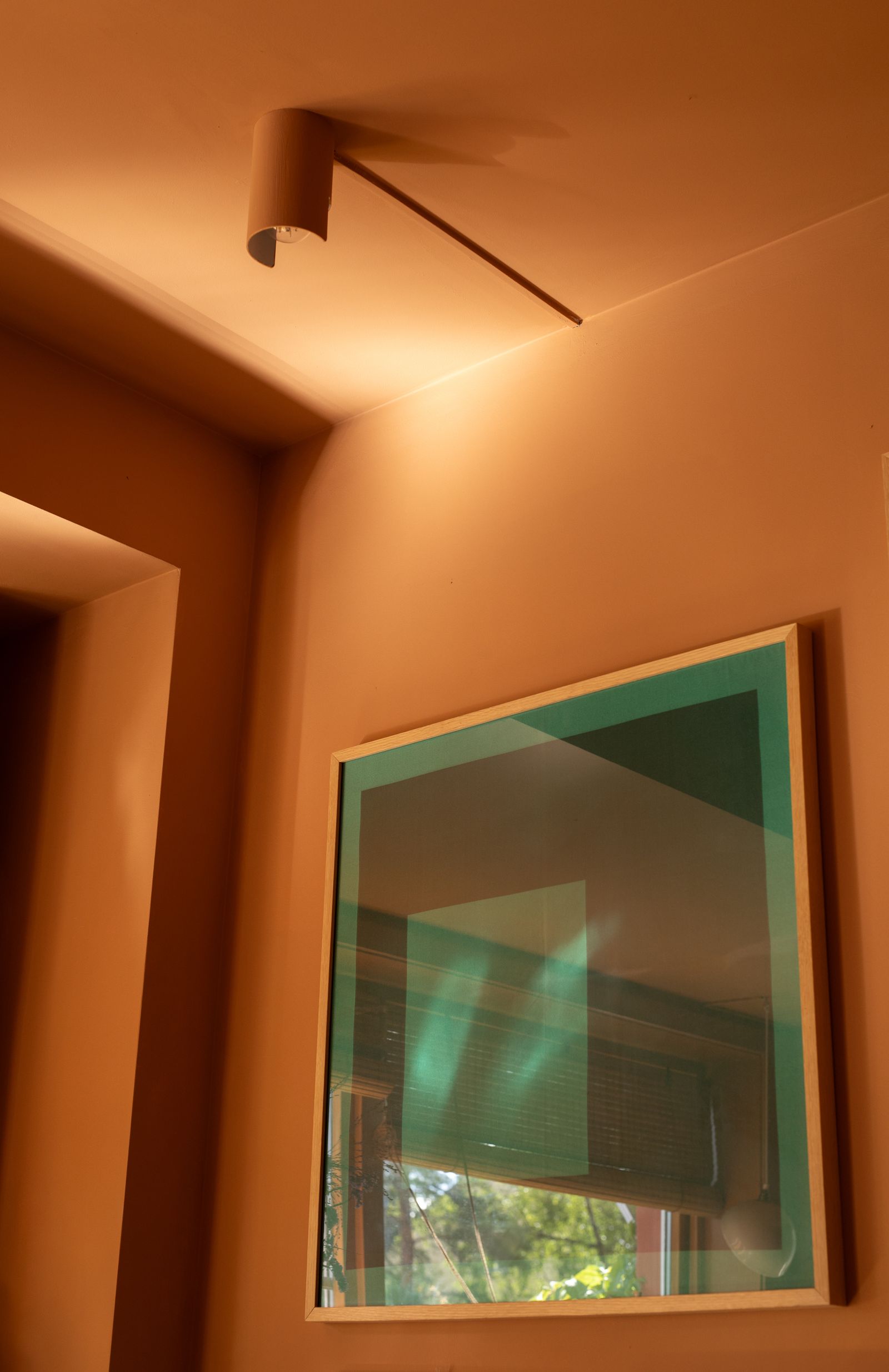 Elaborado a partir de pigmentos naturales, Copenhagen Orange tiene una profundidad y un metamerismo poco comunes, un fenómeno en el que los colores se transforman bajo diferentes condiciones de iluminación. A la luz del día, puede parecer tranquilo y casi beige. A la luz de las velas, resplandece cálidamente. Y cuando el sol del atardecer incide en las paredes, la habitación se transforma en un vibrante despliegue de tonos anaranjados.