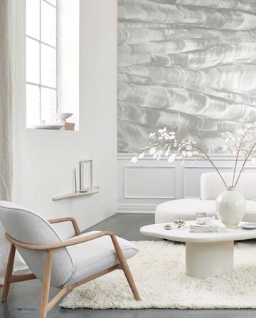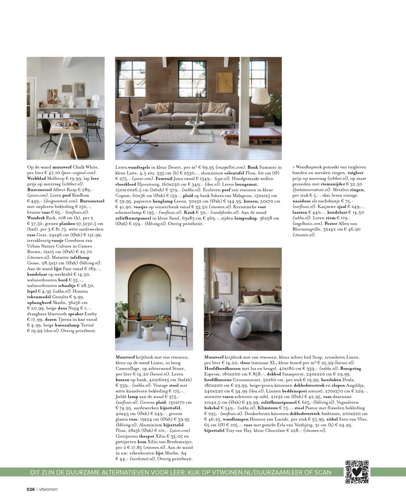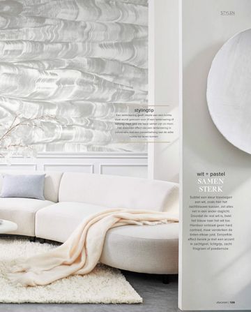 Pure & Original is opgenomen in 2 artikelen, 1 over het toepassen van leer en stoere materialen en 1 over verschillende tinten wit. Vandaar dat Fresco kalkverf is gekozen voor de wanden in de kleur Chalk White, Bone en Lava White.