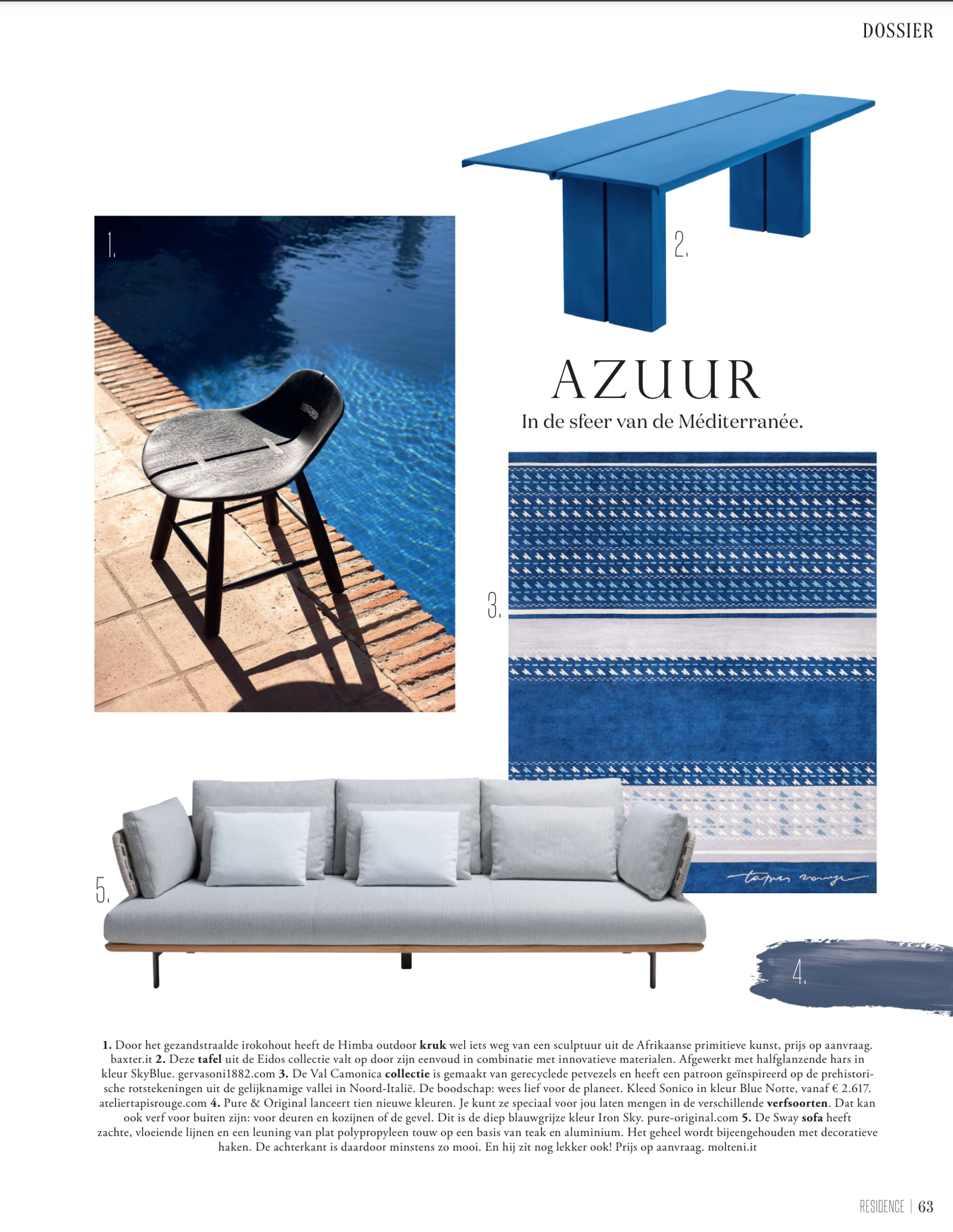 Regelmatig verschijnen er artikelen over de producten van Pure & Original in de media. In de 3e editie van 2024 van de Residence zijn de kleuren Dark Forest, Iron Sky en Teal Blue van Pure & Original opgenomen.