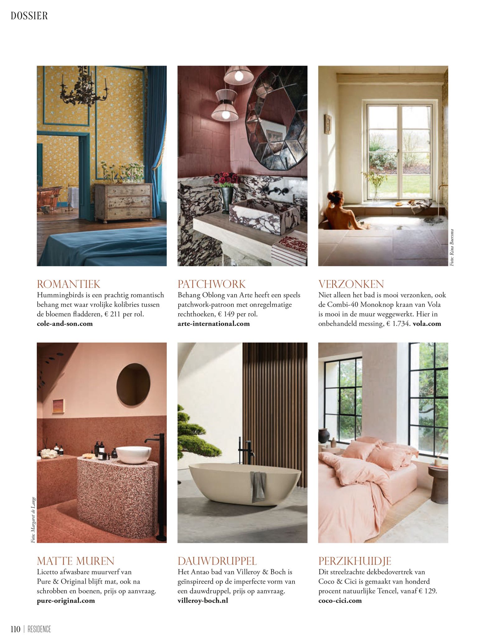 Regelmatig verschijnen er artikelen over de producten van Pure & Original in de media. In de 6e editie van 2024 van de Residence zijn verschillende kleuren en Licetto van Pure & Original opgenomen.