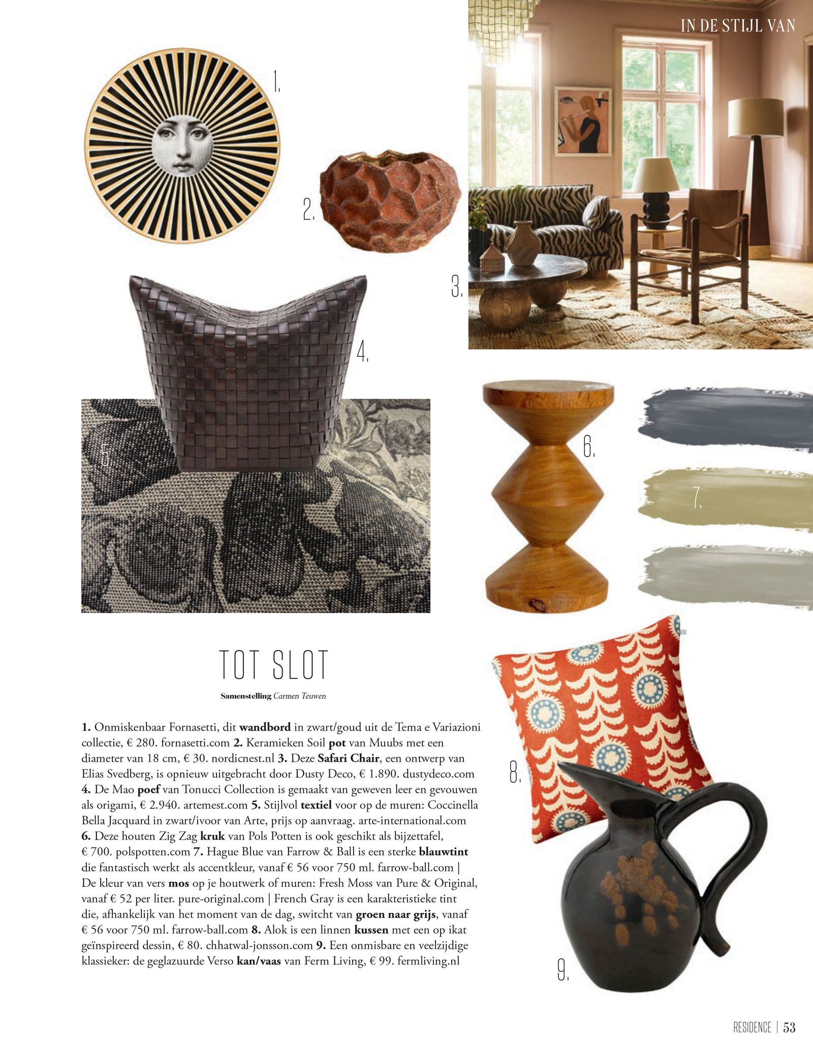 Regelmatig verschijnen er artikelen over de producten van Pure & Original in de media. In de 8e editie van 2024 van de Residence zijn de kleuren Fresh Moss en Skin Powder van Pure & Original opgenomen naast een artikel over muren als kunstwerk.