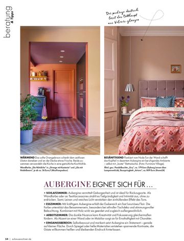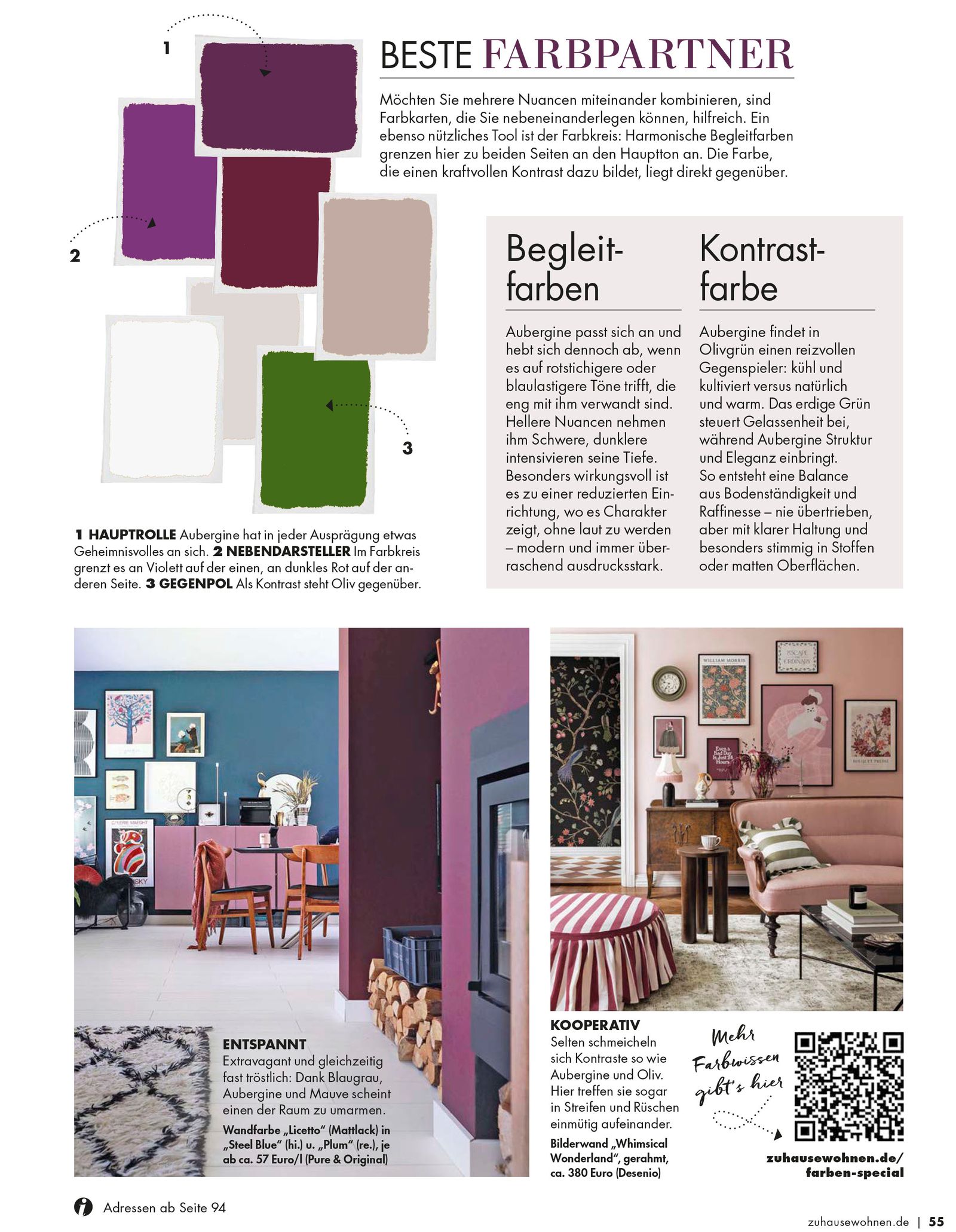 Regelmatig verschijnen er artikelen over de producten van Pure & Original in de media. In editie 8/9 - 2025 van het Zuhause Wohnen magazine komen de verfkleuren van Pure & Original voorbij in een kleurenspecial.
