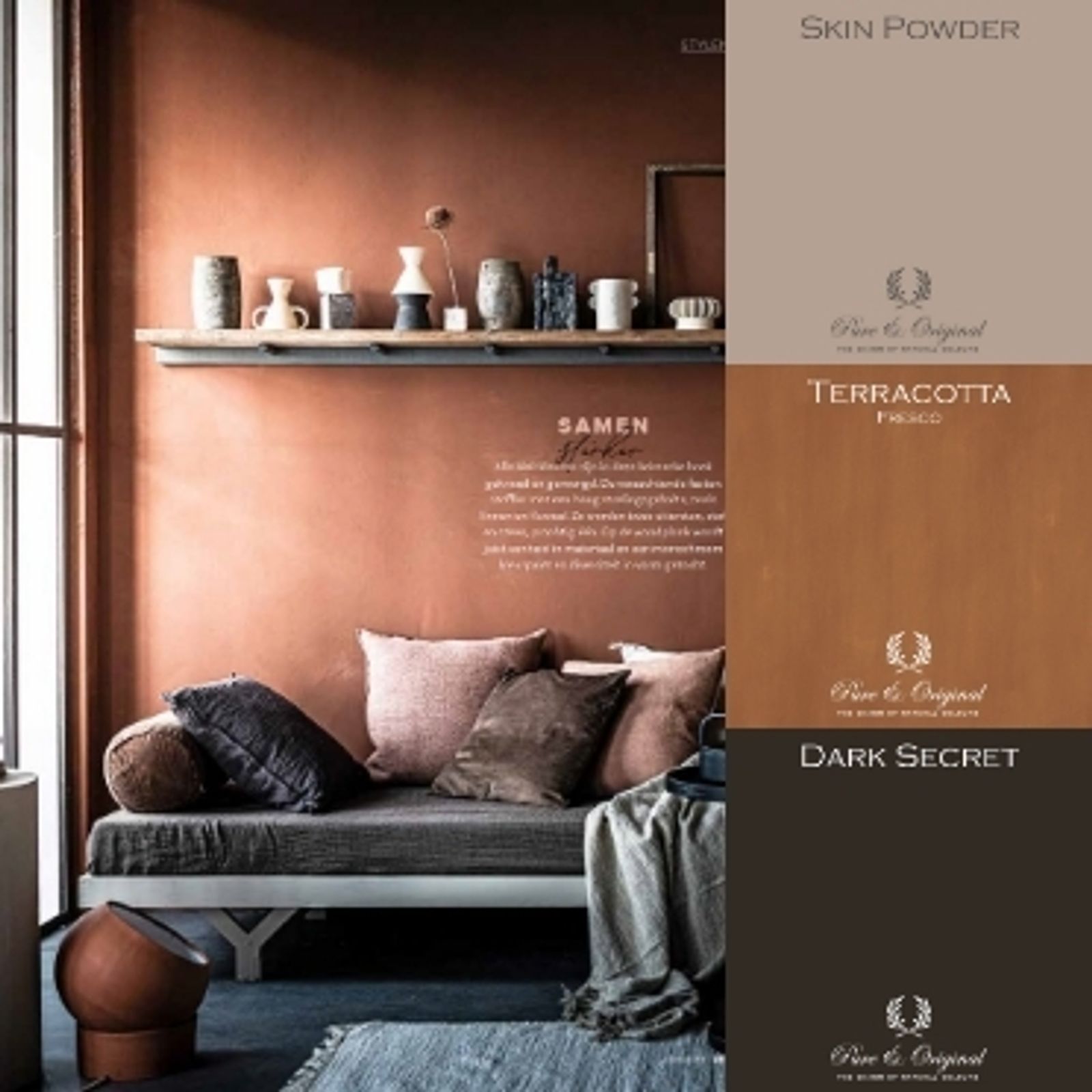 Inspirasjon Moodboards Mørke farger Mørkebrun vegg i Brown Sugar med gule og oransje aksenter Mørkegrå limemalingsvegg i Bohemian Vintage med terra og blått tilbehør Stue med mørkebrun vegg i Brown Sugar med rosa sofa og lyseblå aksenter Terrakottafarget sittegruppe med mørkebrunt og lys rosa tilbehør Spiseplass med mørk lilla vegg, tredetaljer og lys rosa tilbehør Spiseplass med mørk vegg i Black Smoke med aksenter i beige og rødt Mørkerød vegg med limemaling i Cardinal Red med røde, rosa, grå og gullaksenter Soverom med mørkeblå vegg i stålblått med lysegrå og hvite detaljer Mørkeblå betong-look / tadelakt-look vegger malt med Marrakech vegger i blekkblått med rosa og Ink Blue Mørkegrå vegg med terrakotta malt med Fresco kalkmaling Kjøkken med mørkebrun vegg og gule fliser med tremøbler Soverom med brun vegg malt i Mexican Sand med blått og rosa tilbehør Spiseplass med malt sort panel i Black Smoke og trapp i Caramel Bad med betong-look vegg malt med Fresco lime maling i Heavy Clay med rosa og hvite aksenter Interiør med mørk brun, mørk grå, gul og rosa Kjøkken med brun vegg malt i Mexican Sand med Licetto vaskbar veggmaling Licetto vaskbare veggmaling Kjøkken med grønn vegg i Landscape med brune skap og hvit marmorplate Licetto vaskbare veggmaling Mørk rød vegg malt med Fresco lime maling i Marsala med oransje aksenter og lilla malt vase Stue i nøytrale farger med Fresco kalkmaling i Varmhvit på vegger og svart tak i Sort Mørkebrunt betonglook Marrakech Walls vegg i Country Blue i landlig interiør Borddekking med lilla, mørkeblå og knallblå malte tilbehør Del denne artikkelen Se mer Moodboards Lyse farger Moodboards Nøytrale farger Moodboards Industriell Moodboards Skandinavisk Moodboards Bohem