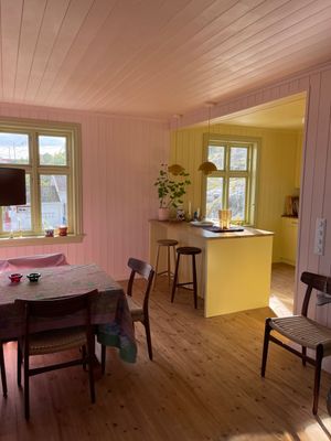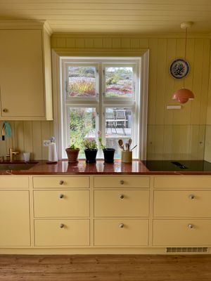 Nå jobber jeg på et veldig spennende prosjekt i et hus fra 60-tallet, som jeg gleder meg til å kunne vise mer av. Jeg har i de siste to årene med min mann totalrenovert og malt et snart 100 år gammel Sørlandshus. Paletten og materialvalgene har jeg lagt ned enormt med tid og krefter i, så å endelig se rommene ferdige, badende i lys og nøye utvalgte farger var et stort øyeblikk, og et prosjekt jeg er skikkelig stolt av.